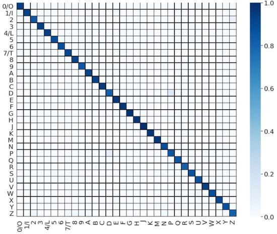The differences in the accuracies were observed for each character. Table 3 shows the precision, recall, and F1 scores for each character. The means of F1 score, precision, and recall were 90.91%, 91.09% and 90.81%, respectively. Some characters were considered as being in the same categories because they have little difference in gesture (0–O, 1–I, 4–L, and 7–T). Some characters showed relatively lower scores (with a standard deviation of 5.07). Only a single character had an accuracy under 80% (“Z” was 79.78%).