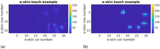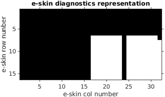 was less than 3. Such an approach successfully detected 31 malfunctioning sensors—three entire columns of the data subset being analysed and one sensor localised in the edge of the analysed subset of the e-skin. All data classified as corrupted were also verified manually. An example of the corrupted data is shown in