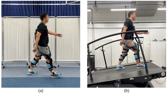 - Haufe, F.L.; Kober, A.M.; Schmidt, K.; Sancho-Puchades, A.; Duarte, J.E.; Wolf, P.; Riener, R. User-driven walking assistance: First experimental results using the MyoSuit. In Proceedings of the 2019 IEEE 16th International Conference on Rehabilitation Robotics (ICORR), Toronto, ON, Canada, 24–28 June 2019. [Google Scholar]