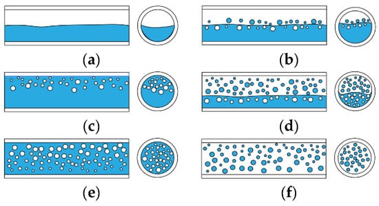 - Nädler, M.; Mewes, D. Flow induced emulsification in the flow of two immiscible liquids in horizontal pipes. Int. J. Multiph. Flow 1997, 23, 55–68. [Google Scholar] [CrossRef]