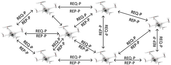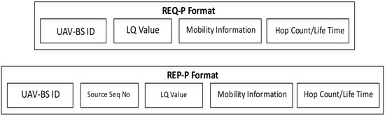 At the initial stage, the UAVs-BS sends the REQ-P message, which includes the UAV-ID, its own location information, CU density information received from cellular network BS, link quality of the source UAV, and route information. Every control message contains a timer and reset function. When the neighbour UAVs-BS receives the REQ-P, they generate the REP-P to confirm the neighbour UAV’s presence and location information. The control messages are around 12 bytes. The UAVs-BS maintain its record in the routing table. Figure 2 shows the UAVs-BS request and reply to messages exchange process.