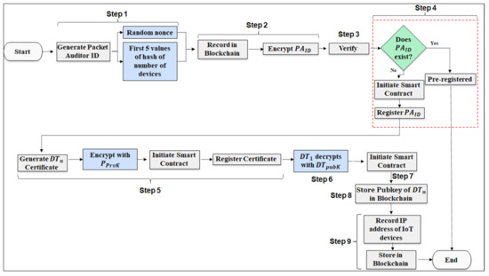 - The PA is further responsible for recording the IP addresses of each IoT device included in and registering them on the Blockchain. This step prevents an attacker from joining their malicious node as part of a valid .