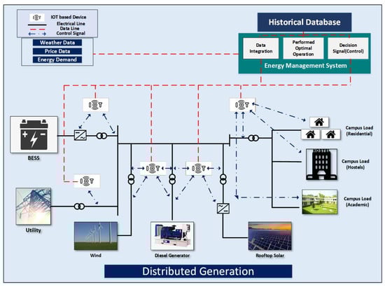 - Muqeet, H.A.; Javed, H.; Akhter, M.N.; Shahzad, M.; Munir, H.M.; Nadeem, M.U.; Sabir, S.; Bukhari, H.; Huba, M. Sustainable Solutions for Advanced Energy Management System of Campus Microgrids: Model Opportunities and Future Challenges. Sensors 2022, 22, 2345. [Google Scholar] [CrossRef]