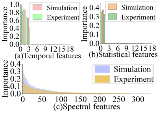 Temporal, statistical, and spectral feature importance analysis on simulated and experimental dataset.