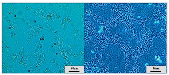 After 24 h, most of the cell lines started to attach to the growth surface with visible signs of proliferation and colonies formation in some cases (especially when a higher cells number was seeded). The rate of both processes was significantly higher in the vicinity of the via holes, plausibly because of the facilitated gas-exchange in that area. Ovary adenocarcinoma SKOV-3 cell line showed the best-looking growth image (please, see Figure 6). After some time, most of the cells were already flattened and sprawled, and the first colonies started to form. It reflects the high attachment rate observed at standard condition tests for this cell line. Other cell lines, such as A549, most of urinary bladder and colon cancer cell lines showed evident signs of attachment but without colonies formation. Cell lines such as gemcitabine-adapted UM-UC-3 exhibited cell shrinkage and blebbing with large numbers of debris in culture medium without any signs of attachment.