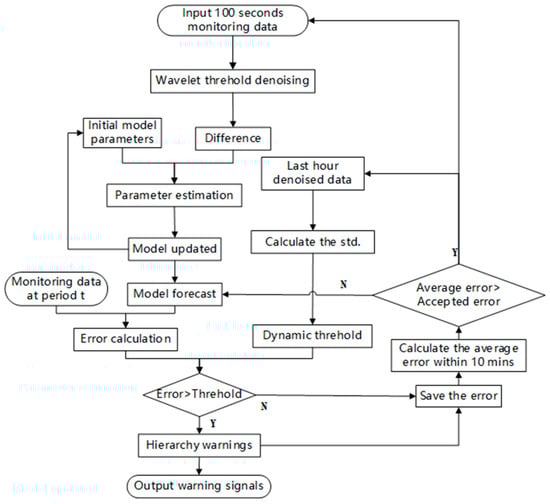 Some researchers in other fields further adapted the ARIMA method to detect anomalies and issue warnings. Li et al. [26] combined the ARIMA model and the transferable belief model to realize the early warning of coal and gas outbursts in coal mining production. Zeng et al. [27] proposed an improved ARIMA model to detect the outliers based on dynamic variance. By selecting an appropriate and adjustable threshold, the algorithm successfully reduced the warning error of optical fiber sensors caused by the normal fluctuations.