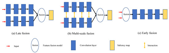 Salient object detection (SOD) aims at locating prominent objects in a given scenario under consideration. In recent years, SOD has attracted significant attention and substantial progress has been demonstrated in the field. The object detection task can be treated as a pre-processing methodology that can be subsequently used in diverse fields, such as image understanding [1], video detection and segmentation [2], semantic segmentation [3], object tracking [4], person re-identification [5] and others. However, due to the complicated real-life scenarios, RGB-based SOD still fails in generating satisfactory prediction maps. In order to overcome this issue and obtain better detection performance in complex scenarios, depth images along with an independent network have been introduced to provide supplementary information. Specifically, Figure 1 illustrates three fusion methods in RGB-D based SOD. Existing state-of-the-art methods mainly adopt late fusion or multi-scale fusion and focus on designing feature-enhanced modules and complicated feature-fusion modules, which indeed improve the overall detection results. However, due to the processing of a high volume of information, the models tend to become extremely complicated, leading to an issue that weakens the practicality of SOD using RGB-D data. In addition to the regular strategies, recent approaches [6,7] propose joint learning frameworks and treat the RGB-D based SOD as a multi-task learning problem. However, these frameworks employ extra network branches and supervision labels, which cause an analogous problem with the aforementioned frameworks. Different from them, the early fusion in Figure 1c integrates the separate inputs into a unified representation before the feature extraction process. It provides an alternative strategy to lighten the model but suffers from the noise issue caused by low-quality depth information. That motivates us to explore the potential of early fusion from a novel perspective and compress the model size for SOD while maintaining high detection accuracy.