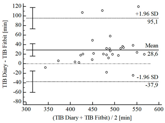 Bland-Altman plot for TIB Fitbit® vs. diary.