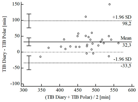 Bland-Altman plot for TIB Polar® vs. diary.