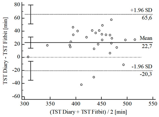 Bland-Altman plot for TST Fitbit® vs. diary.