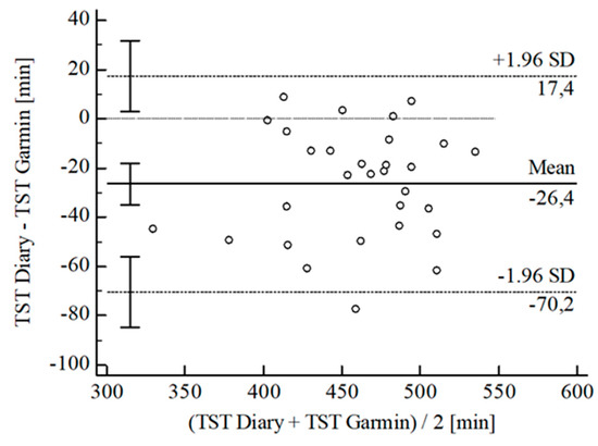 Bland-Altman Plot for TST Garmin® vs. diary.
