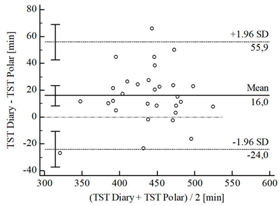 Bland-Altman plot for TST Polar® vs. diary.
