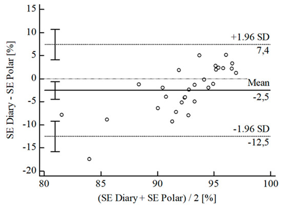Bland-Altman plot for SE Polar® vs. diary.
