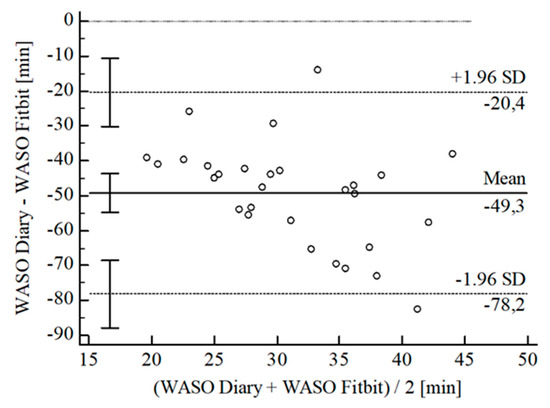 Bland-Altman Plot for WASO Fitbit® vs. diary.