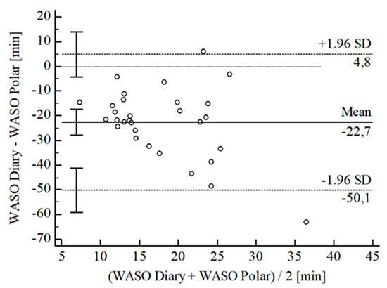 Bland-Altman Plot for WASO Polar® vs. diary.