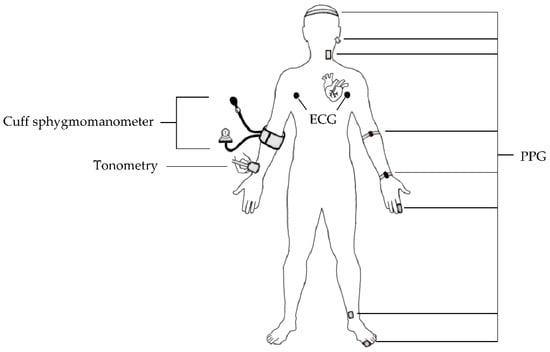- Athaya, T.; Choi, S. A review of noninvasive methodologies to estimate the blood pressure waveform. Sensors 2022, 22, 3953. [Google Scholar] [CrossRef]