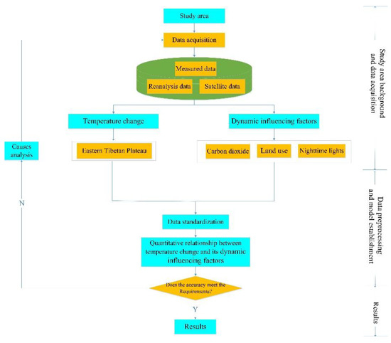 In order to establish a model between the standardized temperature change and its dynamic influencing factors, firstly, it is necessary to determine the buffer size of the meteorological station. Then, using the single-factor analysis method to determine the most closely correlated factors in different periods (annual/seasonal) after data extraction. Finally, the least squares multivariate statistical analysis method is used to establish the model between the standardized temperature change and dynamic influencing factors in different periods.