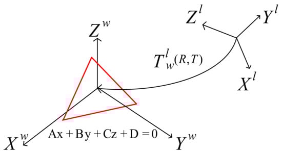 As shown in Figure 2, it is assumed that, in the world coordinate system , the general equation of the global plane is