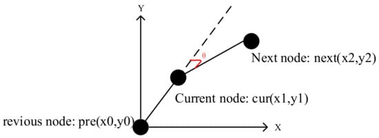 The path smoothing strategy is introduced to determine whether there is obstacle information on the line between the planned path nodes. If there is no obstacle on the line between two points, it indicates that the path node between two points is redundant and can be removed. If there are obstacles to the connection between two points, the intermediate node cannot be removed, as shown in Figure 5.