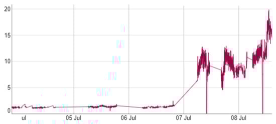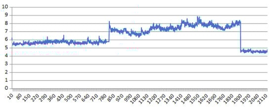 - Scan-Time (PLC’s sampling frequency): One of the handicaps that have come up due to the massive use of mini-terms is the Scan-Time. Scan-Time is the time it takes for the PLC to collect the inputs, execute its PLC program and then update the outputs. Since the objective is to use the PLC’s already installed to measure the mini-terms, it is a parameter that is imposed and generates false positives. Figure 8 shows the effect produced by the Scan-Time on the measured data. This effect causes false positives when the Scan-Time is high in relation to the mini-term value.