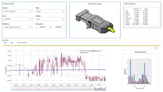 The objective of our line of research is to create the intelligent system “Miniterm 4.0” where, through real-time monitoring of the mini-terms, we will be able to predict the failures of the monitored components, determine their pathology and determine the effect they will have on production and the quality of the manufactured part, see Figure 7. This article shows the results for the first part of the goal: predict the failures. During the last years, Ford factory in Almussafes (Valencia) has been programming mini-terms in different components like cylinders, clamps, robots, elevators, conveyors, gearbox, fans, switches, turntables, etc. Nowadays, the number of mini-terms are up to 22 K. During the installation process, the availability indicators of the machines and production have improved significantly as the mini-terms have been installed and the detection algorithms have been improved. Section 4 shows the evolution and current algorithm for detecting change points by using mini-terms, the common causes that show false positives and how they are being solved. Section 5 shows the results and goodness of the system from the point of view of the improvement in the production indicators, TAV, OM EM, etc. Section 6 shows the conclusions and future work.