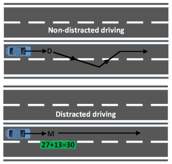 Two experimental conditions D: lane deviation occurs and M: math problem appears [47].