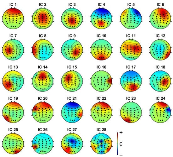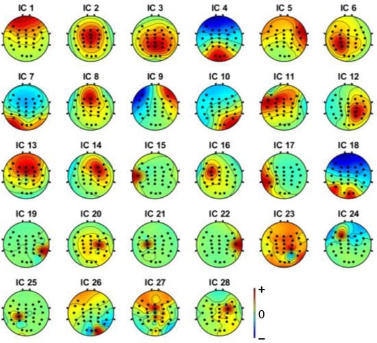 - Delorme, A.; Makeig, S. EEGLAB: An open source toolbox for analysis of single-trial EEG dynamics including independent component analysis. J. Neurosci. Methods 2004, 134, 9–21. [Google Scholar] [CrossRef]