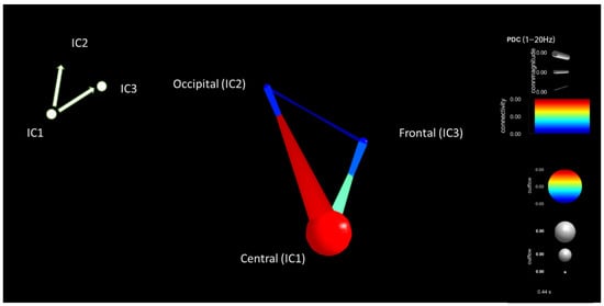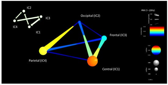 Partial directed coherence (PDC) can be used for the detection of the directed and cascade flows [54]. PDC function describes the influence of channel i on channel j. PDC can be determined as follows