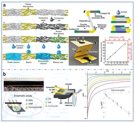 148. Hamedi, M.M.; Ainla, A.; Güder, F.; Christodouleas, D.C.; Fernández-Abedul, M.T.; Whitesides, G.M. Integrating Electronics and Microfluidics on Paper. Adv. Mater. 2016, 28, 5054–5063. [Google Scholar] [CrossRef] [PubMed]
