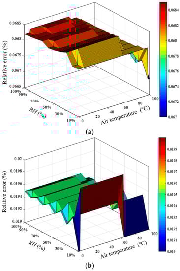 Measurement errors of RH caused by the variation in atmospheric pressure. (a) and (b) .