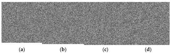 In a real-time scenario, the images are vulnerable to the assaults of data loss and noise. A good scheme is expected to successfully cope with them. Figure 10 shows the noise analysis. The pepper and salt noise was mixed with various densities of 0.1, 0.2, 0.3, and 0.4 in the cipher images of Lena, baboon, cameraman, and airplane (Figure 10a–d). The images restored after applying the decryption algorithm over them were redrawn in Figure 10e–h, respectively. Obviously, these decrypted images are still recognizable, which demonstrates that the suggested scheme can avert the noise attack. Similarly, a data loss analysis is demonstrated in Figure 11. Figure 11a–d represent the encrypted images with 0%, 25%, 50%, and 50% data losses in the encrypted images of Lena, Lena, airplane, and cameraman, respectively. The decrypted images are shown in Figure 11e–h. One can see that the plain images can be appreciated easily, implying that the proposed image cipher has the capability to foil data loss attacks.