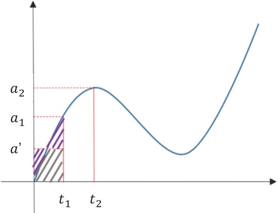 The result calculated by this integration method is more accurate than that calculated by the original formula . The velocity change, which is the area calculated by this method, is shown by the area in Figure 2, and is the average acceleration of and the acceleration from the previous sampling point. It can be found that the purple area on the left can be roughly compensated to the original missing area, so the integral error will be smaller than the original formula. We perform the integration separately on the three-axis data collected by the sensor to obtain the velocity of each axis, and then we use a similar integration technique to obtain the displacement.