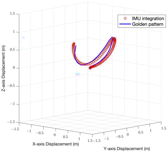In addition, there will be a physical blind spot in the actual acceleration integration. When the sensor is stationary after a motion, the acceleration integration area during acceleration and deceleration cannot completely offset each other. Even if the sensor is at rest and the acceleration has become exactly zero, the velocity remains at the same value of the previous sampling point. In this case, when the velocity is integrated to obtain the displacement, the sensor will seem to continue its motion at a constant velocity instead of being in a static state. Therefore, a new judgment condition is added here. When the acceleration of fifteen consecutive sampling points is zero, it is determined to be a static state, and the velocity is returned to zero. A reasonable velocity threshold is also obtained through multiple experiments, and is set to to ensure that the above-mentioned accumulation of errors will not occur.