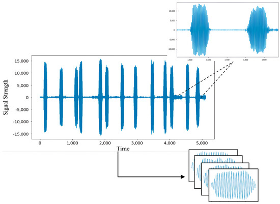 The dataset selected for the experiment is the actual FMCW radar signal. The carrier frequency is about 100 MHz, and the sampling rate is 400 msps. The visual image of the signal is shown in Figure 1. Five groups of data are selected. Each group is the emitter signals of different radars, composed of 1000 pulse signals of time sequence. Each pulse signal is extracted into time sequence subsequence samples and divided into the training, verification, and test sets by setting the threshold of pulse rising and falling edge. Through down conversion and resampling, each subsequence sample contains 100 sampling points. The abnormal pulse signal is randomly added to the test set so that the abnormal ratio of the test set is 15%.