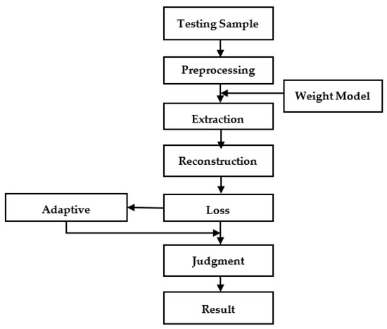 The reconstruction error of the neural network model for abnormal and normal signals is quite different. The error for the anomaly is generally large, and the error for the normal signal should be close to 0 [22]. Based on this property, the threshold can be reasonably set as the decision threshold. The decision process is as follows