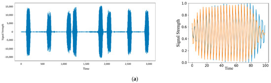 Anomaly detection is screening situations contrary to the distribution law of normal data from the data to be detected [1,2,3,4]. The traditional anomaly detection model [5,6,7] uses complex algorithms and equipment. It has poor real-time performance and cannot be popularized. Scholars at home and abroad have proposed many unsupervised learning methods to solve the problems. Standard methods include the AE-based method and the GAN-based method [8,9]. The former extracts the potential features of time-series signals by establishing neural networks, reconstructs the signals by features, and distinguishes whether the reconstructed signals are abnormal by evaluating the differences between the reconstructed signals and the original signals. The latter reconstructs the timing signal through the generator, and the discriminator judges whether it is an anomaly. The two continue to iterate and optimize to achieve the desired effect. In 2015, An et al. proposed an anomaly detection method using VAE to reconstruct probability [10], which is better than the methods based on an autoencoder and a principal component. Using the generation characteristics of the VAE, the data can be reconstructed, and the root cause of the anomaly can be analyzed. In 2016, O’Shea et al. proposed a periodic anomaly detector [11] that models and predicts IQ channel data. It uses an LSTM network model to predict IQ channel sampling data of the following four times by learning the past signal sampling values of 32 IQ channels. Then, it judges whether there is an anomaly based on the error value. However, this method depends on the periodic change law of electromagnetic signals, and the periodicity of electromagnetic signals often changes with time. Therefore, this method can only predict short-term anomalies, which has great limitations. In 2018, Xu et al. constructed the donut algorithm [12] based on the VAE, which trains the normal and abnormal data simultaneously, making the feature extraction more complete and providing a new idea for the VAE-based anomaly detection algorithm. In 2019, Chen et al. used the confrontational training method, Buzz [13], to detect anomalies in complex time series. This method not only reached a very high level in the public dataset but also gave a theoretical inference to transform the model into a Bayesian network, which enhanced the interpretability of the model. In 2020, Niu et al. proposed a VAE-GAN detection model [14]. The model jointly trains the encoder, generator, and discriminator, which can improve the fidelity of signal reconstruction, make the distinction between normal and anomalies more significant, and improve anomaly detection Accuracy. Lin et al. proposed a mixed anomaly detection method [15], which combines the representation learning ability of the VAE with the time modeling ability of the LSTM. The VAE structure aims to capture the structural rules of the time subsequence on the local window, while the LSTM structure models the changing trend of the long-term time series. Audibert et al. proposed a fast and stable unsupervised anomaly detection method, USAD, for multivariate time series [16]. This method uses the automatic encoder architecture to meet the conditions of unsupervised learning. The use of adversarial training enables rapid training and the isolation of anomalies. Experiments on five public and proprietary datasets verify its high robustness, training speed, and anomaly detection performance. Huang et al. proposed an unsupervised time-series anomaly detection method based on multimodal countermeasure learning [17], which converts the original time series into frequency-domain space, constructs a multimodal time series representation, uses a multimodal generation countermeasure network model, and realizes unsupervised joint learning of normal time-series information about time-domain and frequency-domain feature distribution for multimodal time series, The anomaly detection problem is transformed into the measurement problem of time-series reconstruction in time-frequency space. The anomaly of time series is measured from the time domain and frequency domain. Compared with the traditional single-mode method, this method has improved the AUC and AP by 12.50% and 21.59%, respectively, which provides a new direction for electromagnetic signal anomaly detection based on deep learning.