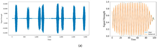 Anomaly and reconstructed signal: (a) Original signal of an anomaly; (b) Reconstruction signal of anomaly.