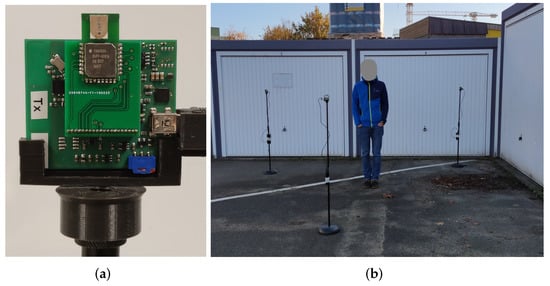 UWB radar sensor networks aim to localize persons within a target area, e.g., mono-static UWB sensor radar networks are proposed in [24,25]. Mono-static UWB radar sensor networks require that the same sensor node be able to receive the transmitted UWB pulses, e.g., with a second receive antenna. Multi-static UWB radar sensor networks are proposed in [26,27,28]; there, one sensor node transmits UWB pulses, and at least one different node acts as the receiver. Those approaches have in common that they calculate the time-of-arrival upon receipt of the signal. With this information, tracking is performed, e.g., with the help of particle filters.