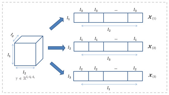 Tensor unfold: The tensor unfolds along the n-th called tensor matricization. Tensor matricization is the unfolding of tensors into a matrix format with a predefined pattern ordering. Figure 2 shows unfolding of the tensor, matrices , and are tensors respectively, 1, 2, 3 modules are unfolded. At the same time, is used to convert a matrix into a k-th order high-order tensor .