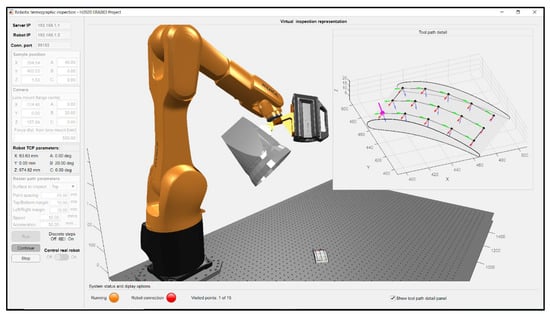 - Commercially available OLP software does not provide capabilities for full synchronisation between robotic movements and NDT data acquisition from sensor instrumentation systems (e.g., the thermographic IR camera, in this case). Such synchronisation is fundamental to enable the possibility of positional encoding of the NDT data to create accurate NDT maps of an inspected part [].