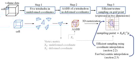 - Gascon, J.; Espadero, J.M.; Perez, A.G.; Torres, R.; Otaduy, M.A. Fast deformation of volume data using tetrahedral mesh rasterization. In Proceedings of the 12th Computer Animation, Anaheim, CA, USA, 19–21 July 2013; pp. 181–185. [Google Scholar]