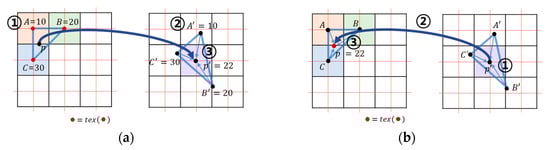 2.3.2. Calculation of the Barycentric Coordinates Using the Reference Point