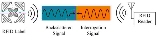 The sensing principle of UHF RFID: the information exchange between the tag and the reader is achieved through the interrogation signal and the backscattered signal.