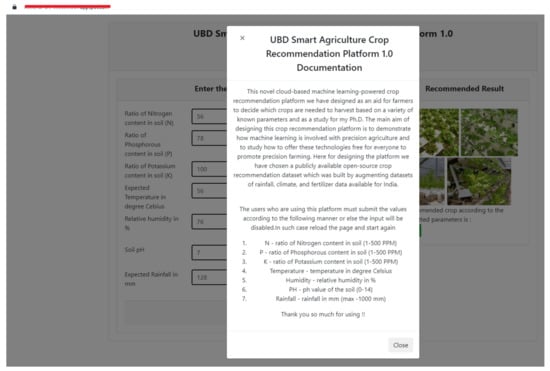 From our perspective, as we have discussed, free and open-source precision farming solutions are still growing in the market, and there is still a long way to go, as they have to compete with commercial solutions. On the other hand, most of the free and open-source solutions are aided by a community of developers and other relevant stakeholders and farmers, thus empowering the growth of open-source solutions, as any development issues and doubts related to the integration of technology can be tackled with ease [,,] with the help of these communities. Therefore, the main work in our study, we proposed and designed our crop recommendations platform while bearing this in mind.