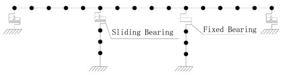 A general model of continuous girder bridges is illustrated in Figure 2. A bridge is divided into a number of elements representing the girders, supports, and piers. The numbers of free nodes, supporting nodes, and piers are denoted by n, m, and l, respectively.