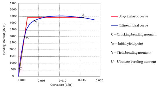 Plot of the moment–curvature relationship of the cross section of the bridge pier.