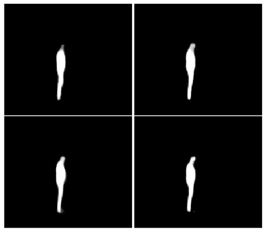 Figure 4 shows the outputs of the network after different epochs. The network is not quite sure about the head after two epochs; however, it grows with each successive epoch. After seven epochs, the network seems to have learned about the head, which is a relatively small part of the body with unique features and contributes less to the loss function. After nine epochs, the output is bright white, which shows the high confidence of the network.