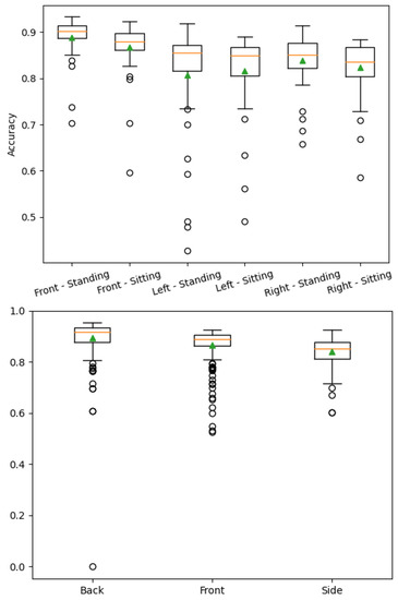 Accuracy value analysis by dataset. Left—standing and sitting people, right—people in complex positions.