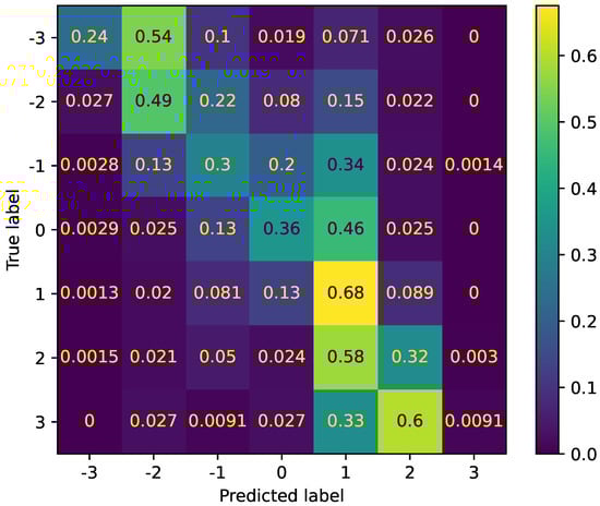 Normalized confusion matrix for seven-class sentiment analysis [−3, 3].