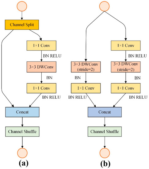 Standard Shuffle unit (a); Shuffle unit for down-sampling (b) Reprinted/adapted with permission from Ref. [49]. 2018, ©Springer Nature.